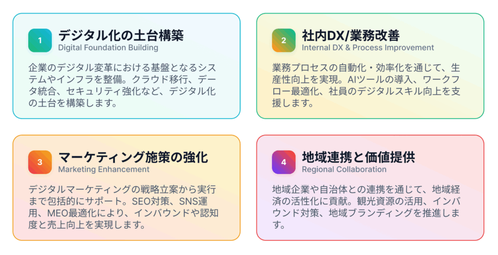 「繋がり」と「デジタルを融合」し、地域経済の活性化に貢献する デジタルへの嫌悪感を「ワクワク」へ変える、地域企業における唯一無二のパートナーに。 問い合わせはこちら Who we are 私たちはDX・AIを浸透させていくことを目指します。 ⚠︎ attention DX・AI活用における課題 DX・AI活用の課題をクリアにすることで生産性向上と競争力強化のカギとなる。 これらの課題を解決するのが、SCIRNEXのDX・AI支援サービスです。 DEGITAL GROWTH STRATEGY デジタル戦略〜成長戦略 収益最大化の4つのポイント 企業の成長には、単に商品を販売するだけでなく、デジタルを活用した戦略が不可欠です。収益を最大化するための4つのポイント。 growth この戦略で実現できる成果 service 金沢の未来を作る4つの事業 テクノロイジーとクリエイティブを融合し、ビジネスの成長を加速させるソリューションを提供します。 AI観光大使事業 企業/店舗ごとにAI観光大使を制作し、企業/店舗の魅力を発信。AIのテクノロジーを活用した、多言語動画でインバウンド獲得へ。 Comming Soon WEBマーケティング マーケティング戦略の立案や設計からHP/LP制作、MEO対策、SNS運用など包括的なご支援で企業のブランディングや集客を支援。 Comming Soon DX推進支援 デジタル技術を活用して、ビジネスモデルや営業プロセスなどの変革を行う。ITツールの道入や戦略設計〜実行などを包括的に支援。 Comming Soon 地方創生 観光資源の豊富な金沢市を中心とする石川県の地域経済の活発化を目指します。企業の支援を中心とする活動を行なっております。 Comming Soon management 経営者紹介 PRやマーケティング領域で経験豊富な経営メンバーが在籍 濱上 昂 TAKA HAMAGAMI CEO 星稜高校野球部、専修大学法学部卒。東証プライム上場企業で商社、メーカーを経験後、都内ベンチャー広告代理店の幹部として活躍。2024年、家業の濱上呉服店を継ぐため帰郷し、わずか5ヶ月で60以上の地元企業と提携を実現、低迷していた売上をコロナ禍前の水準まで回復させる。 渡邉 健太 KENTA WATANABE COO 星稜高校野球部、大阪商業大学総合経営学部卒。新卒でI T系ベンチャーに入社。2 3歳で起業、 SNSマーケティング/インフルエンサーマーケ ティングやライバーキャスティングなどPR周りの事業を複数展開。現在は大阪で戦略コンサル会社を経営し、当社COOも兼務。他顧問3社。 company 会社概要 テクノロジーとクリエイティブの力で、地域企業のてじたる変革を支援します。 会社名 合同会社SCRINEX 本社住所 石川県金沢市此花町5−6ライフ金沢第一ビル 代 表 濱上 昂 従業員数 2名 設 立 2025年8月4日 資本金 10万円 取引先 (株)ミリオンスターズ住信SBIネット銀行 事業内容 AI観光大使事業 WEBマーケティング支援 DX/AI推進支援 地方創生事業 FAQ よくある質問 AI観光大使やサービスについて、お客様からよくいただく質問にお答えします。その他ご不明点がございましたら、お気軽にお問い合わせください。 手軽に試せるプランはありますか? はい。30日間の無料トライアルをご用意しています。この期間中はすべての機能を制限なくご利用いただけます。また、専任のサポート担当者が導入後の設定や操作方法を丁寧にサポートし、貴社のニーズに合った活用方法をご提案します。 どのような企業/店舗が導入していますか? 幅広い業界の企業様にご利用いただいております。具体的には、飲食業界、サービス業、IT企業、BtoB企業など、業種や規模を問わず導入いただいています。特にインバウンドのお客様がいらっしゃる場合、費用対効果を感じていただけやすいです。 AI動画はどのような活用方法がありますか? 基本的にはGoogle Mapでの活用を推奨しています。TiktokやYoutube、Instagramでのリールなど縦型動画を主とするSNS各種での活用も事例としてはございます。また、インバウンド向け接客ツールとしてもご活用いただいている事例もございます。 動画の台本は準備してもらえますか? はい、台本はSTANDARD以上のプランには含まれていますので対応可能です。お客様には訴求したい内容をヒアリングさせていただきますので、内容に応じた台本を当社にて作成いたします。営業担当者までご相談ください。 撮影機材がなくても大丈夫ですか? はい、撮影機材がなくても可能です。縦型動画で複数媒体で活用できることがメリットにもなるため当社側で撮影する際もiPhone16などの最新機種を活用し高画質の動画及び画像を撮影しております。 動画以外にSNS運用も可能ですか? SNS運用代行も対応可能です。主にTikTokやInstagramでの運用をメインでご提案させていただく形となります。戦略設計~実行~改善までお客様に伴走し、KGI達成を共に目指します。 CONTACT お問い合わせ ご不明な点やご相談がございましたら、お気軽にお問い合わせください。専門スタッフが丁寧にお答えします。 お問い合わせ 電話はこちら